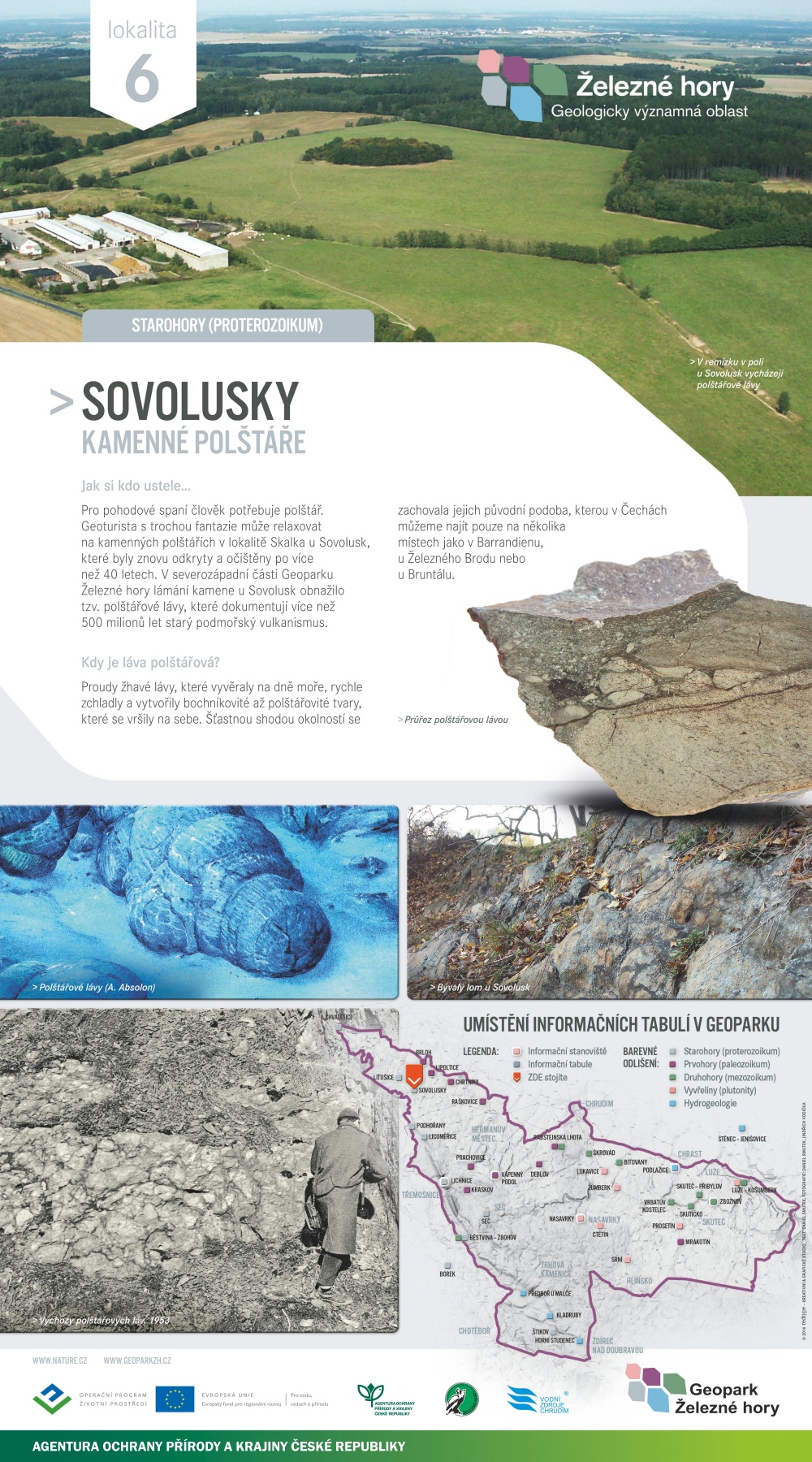 V rámci projektu Železné hory – GVO byly zhotoveny dvě informační tabule, které byly umístěny na návsi v centru obce Sovolusky. Asi 600 m jihovýchodně od tabulí při silnici na Turkovice byl v místech dnešních polí provozován mělký lůmek s výchozy páskovaných břidlic. Dnes je tato lokalita zavezena. Asi 600 m severovýchodně od tabulí se nachází mezi poli a pastvinami opuštěný lůmek (dnes přírodní památka Skalka u Sovolusk), přístupný po místní komunikaci ze Sovolusk do Urbanic. Na této lokalitě byly provedeny terénní práce, které sestávaly z očištění skalní stěny a vykácení náletových dřevin v blízkém okolí (GPS: 49°50’8.25″ N, 15°39’8.01″ E).